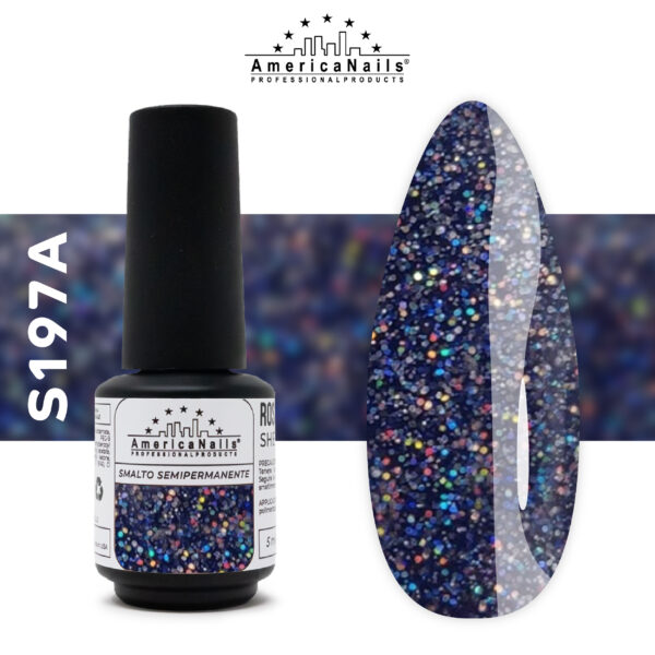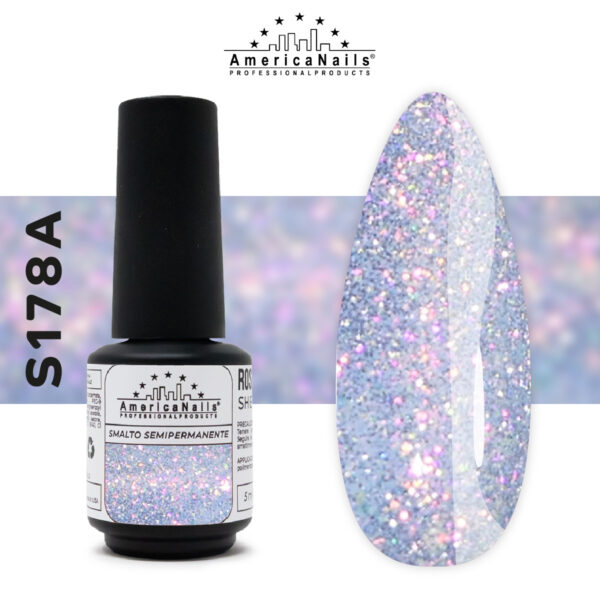 Smalto semipermanente olografico, trasparente con micro glitter e foil a riflesso blu. Si suggerisce il Base/Top di AmericaNails Twin Base o la base rinforzata Builder Soak off e il sigillante Top Repair. Formato da 5ml prodotto tpo free.