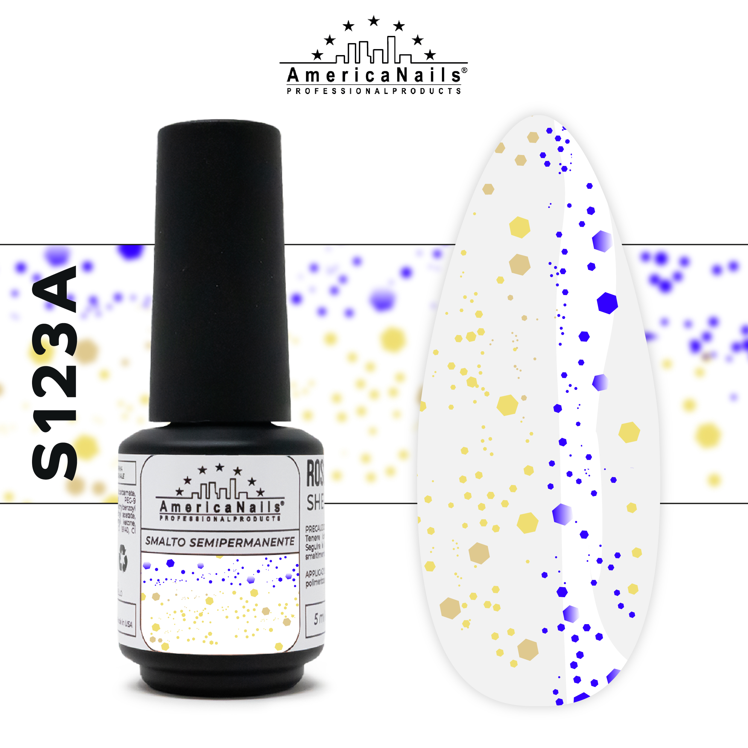 Smalto Semipermanente, adatto al nail art, si consiglia il Base/Top di AmericaNails Twin Base o la base Builder soak off e il sigillante Top Repair.